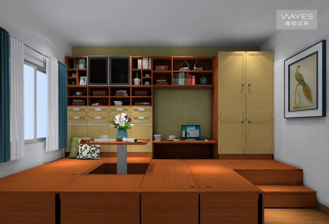 對(duì)于很多家庭來(lái)說(shuō),單一功能的書房已無(wú)法滿足需求。在書房設(shè)計(jì)榻榻米,不僅可以提供強(qiáng)大的藏書收納需求,還能滿足學(xué)習(xí)、工作以及臨時(shí)客房等需求。