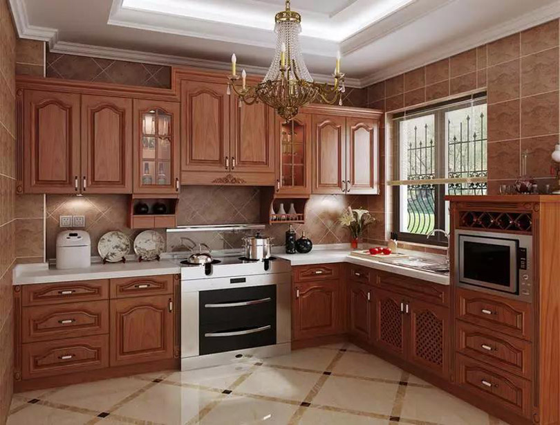 使用實(shí)木制作櫥柜門板,風(fēng)格多為古典型,美式、中式家居風(fēng)格中比較常見,以櫻桃木色、胡桃木色、橡木色為主。