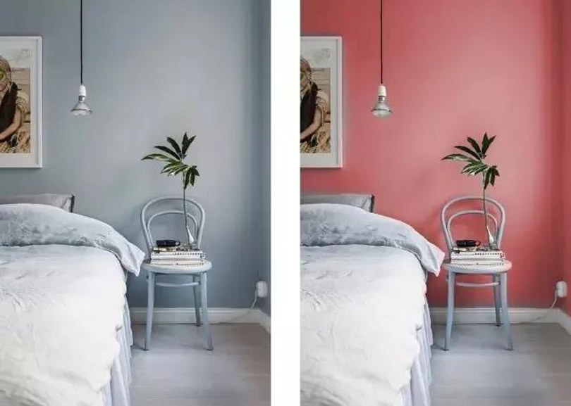 暖色會讓人覺得物體更接近你,視覺距離短,故又稱為之前進(jìn)色,冷色則相反,屬于后退色,會使視覺距離變長。善用前進(jìn)色和后退色,能讓我們自如地對戶型進(jìn)行優(yōu)化。