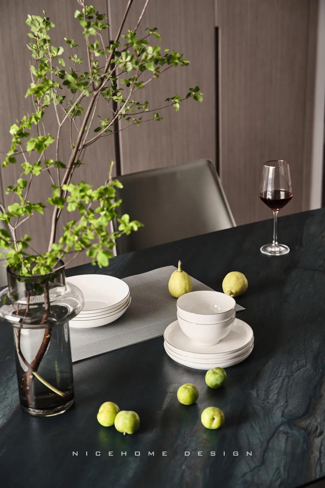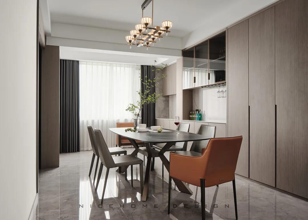 【項目·信息】 地址 / 銀億東岸 戶型 / 四室兩廳 面積 / 200㎡ 風格 / 現代簡約 設計施工 / 浙江南鴻裝飾 1 關于作品 本案以現代簡約為主題,簡潔明快的設計風格為主調,著力體現家的精致與個性,符合現代人的生活品味。 公共區域整體采用暖咖和黑、白色調,溫和親切又帶著現代感的利落灑脫,木格柵增強視覺效果,軟裝上則重點用橙色點綴,烘托溫馨氣氛與活力感受。 2 戶型圖 3 設計落地 玄關 ENTRANCE 玄關端景處一幅格外醒目的復刻畫,大色塊的紅彰顯熱烈、前衛,寓意主人對新生活的愛和熱忱,從今往后,要把每一天都過得“熱氣騰騰”! 客廳 LIVING ROOM 客廳,暖咖色伴隨著溫柔的觀感,讓時光也仿佛靜止于此。沒有特別多收納設計,這里的一切布置均以“美”為第一要義。 電視背景墻的設計,低調中透著華麗。高顏值的大理石磚搭配錯落有致的木格柵,冷暖結合,細節處再點綴光影,簡潔而富有格調。 木質格柵,素來自帶一種東方禪意之美,虛實相生,正是架構意境的獨到方式。木飾面板中藏起通往次臥的房門,視覺高度統一。沙發與茶幾選擇低矮款式,有利于縱向拉伸層高。 餐廳 DINING ROOM 一個優秀的餐廳,光靠視覺,就能成功挑動你的味蕾,再平凡的食物也因此裹上了一層美好滋味。 整排餐邊柜兼做酒柜,玻璃柜內藏酒,儲物柜里存放食品,實用性與美觀度都是一流。窗邊做了小水吧,延續廚房的功能,餐前餐后的手部清潔也更方便。 在這里每天給孩子做一頓愛心早餐,給愛人煮一壺香醇的咖啡,幸福的感覺就這樣漸漸氤氳開來。 廚房 KITCHEN 廚房寬敞明亮,黑色櫥柜較一般櫥柜而言更能凸顯質感,功能設備完善,在吊頂上也做足了功夫,造型感與線條感呼應整體風格。 過道 CORRIDOR 溫潤的木材非常容易給人親近的感覺,無形中就消弭掉空間與居者的距離。過道一側設計儲物區域,層架上適合擺放書籍、小飾品等,空間瞬時生動了起來。 臥室 BEDROOM 主臥延續公共區域的色調,米灰色硬包和木飾面,讓溫暖、淡雅的味道徘徊其中。一盞暖意小吊燈垂下,增強空間的調性,小飄窗則賦予臥室更多的浪漫色彩,和對生活的美好想象。 次臥,皮藝、布料、金屬與線條的融合,交匯出高品質精致感。 粉色是兒童房一直在流行的主題,許多女孩子的夢里或許都有這樣一個如童話般的飄著粉紅泡泡的房間吧~