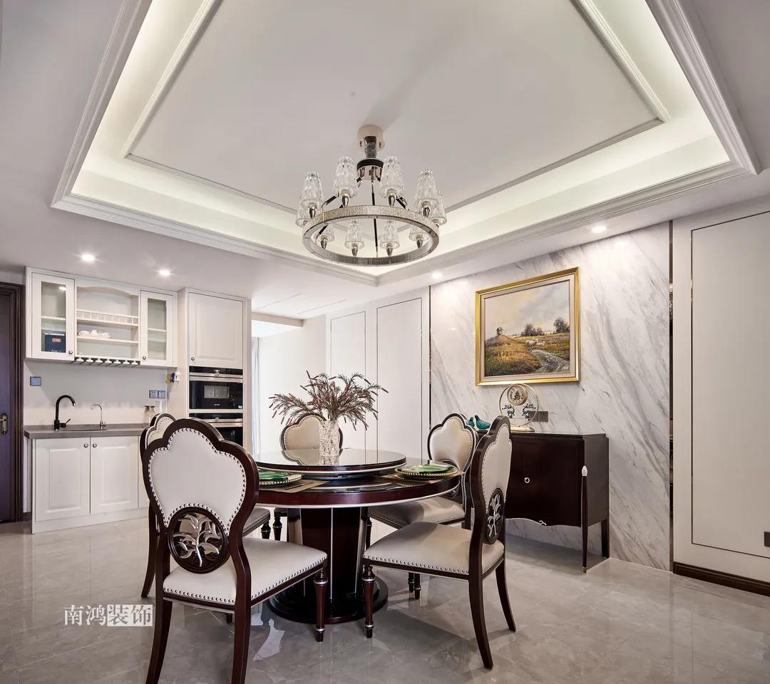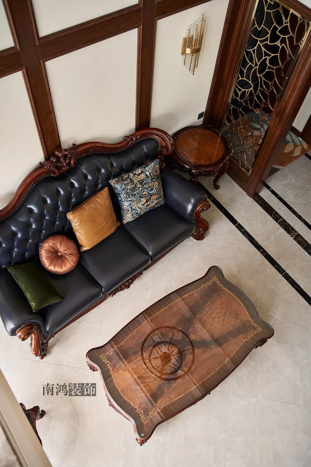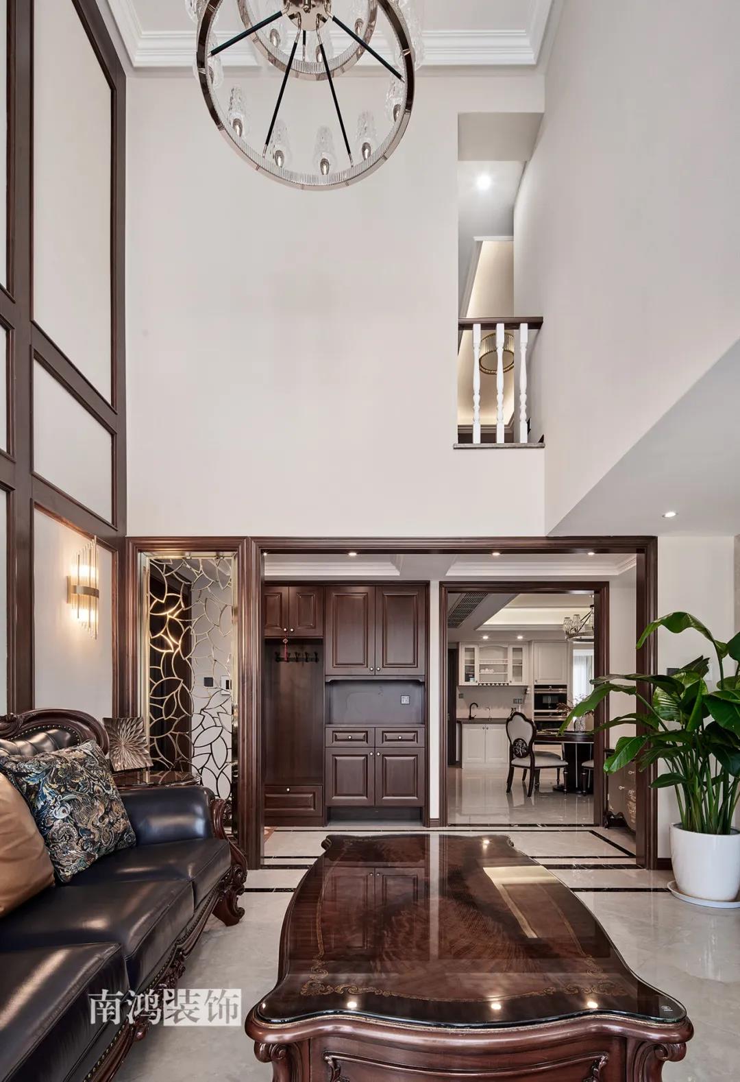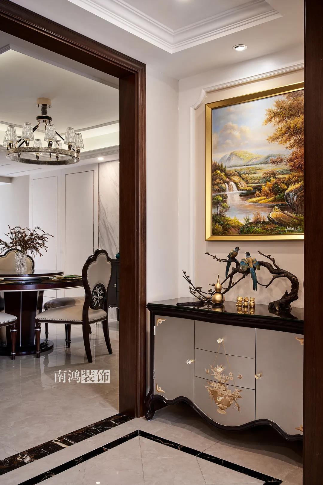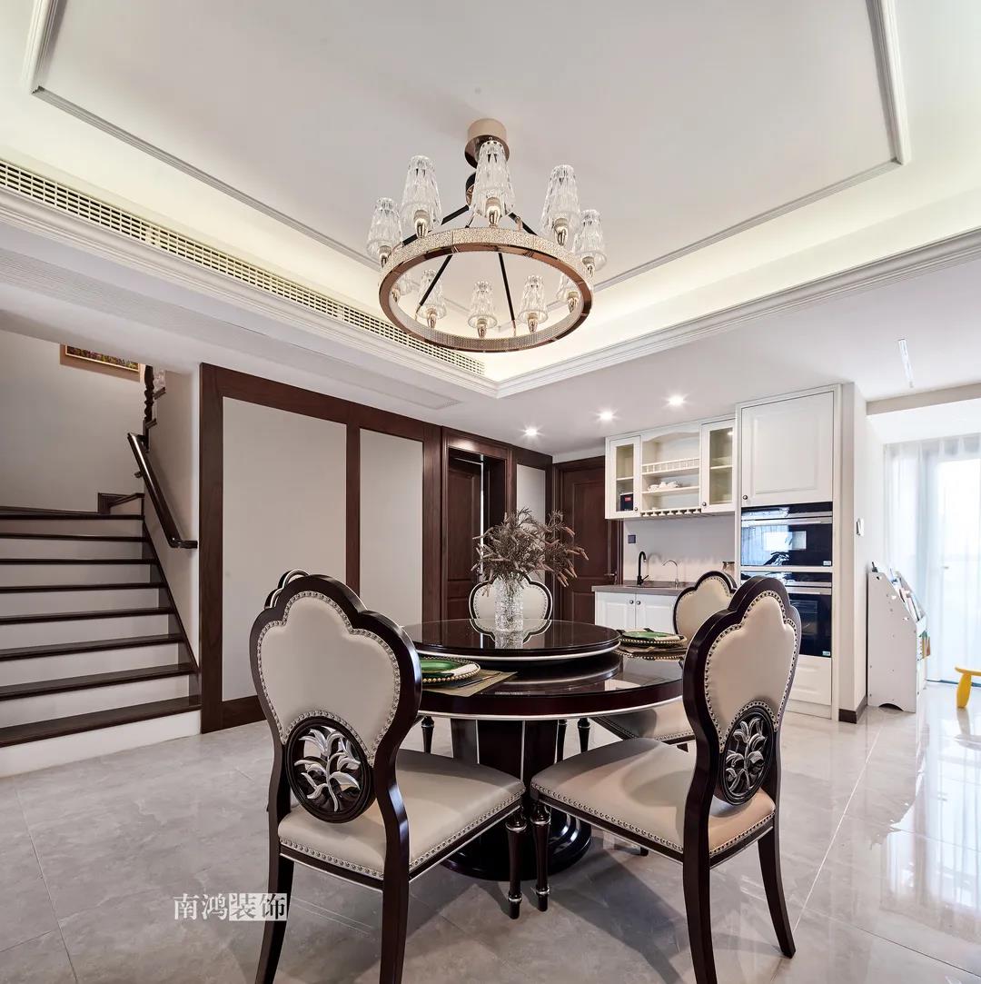 全屋雜糅了新古典、美式、中式、現(xiàn)代等風(fēng)格的軟裝陳設(shè),不同的空間有著不同的空間表情,想必每日住著看著都能感受到不一樣的趣味~ 01. 玄關(guān) ENTRANCE 正對(duì)入戶口的玄關(guān)走道,盡頭處用矮柜輔以金框風(fēng)景畫和擺件打造端景,實(shí)現(xiàn)高雅藝術(shù)表達(dá)。 02. 客廳 LIVING ROOM 轉(zhuǎn)入客廳,挑高的空間氣勢(shì)十足。軟裝材質(zhì)、色彩選擇,傳達(dá)出濃厚的歷史文化底蘊(yùn),契合業(yè)主對(duì)高檔格調(diào)的追求,同時(shí)在硬裝上簡(jiǎn)化線條,空間更加明晰可觀。 為了滿足大家庭的活動(dòng)需求,設(shè)計(jì)師將原有的客餐格局重新規(guī)劃,一層客廳在最大范圍內(nèi)打開(kāi),讓光線與氣韻流通,形成一個(gè)視野開(kāi)闊、采光良好的會(huì)客休閑領(lǐng)域。從這里可以看到二樓孩子的學(xué)習(xí)讀書角。 5.4米的沙發(fā)背景墻自然成為整個(gè)客廳的視覺(jué)焦點(diǎn),設(shè)計(jì)師選擇了護(hù)墻板的形式,木板分割出的造型有助于進(jìn)一步拉伸層高,大氣高級(jí)的效果貫穿一二層空間。 客廳是家庭活動(dòng)的重心,在裝飾上力求凸顯典雅莊重的特點(diǎn)。華貴的深色沙發(fā)靠墻安放,金屬鏤空隔斷在壁燈的照耀下泛起光澤,光滑的茶幾表面折射著溫度,優(yōu)雅利落的奢華感,從種種細(xì)節(jié)間流露出來(lái)。 03. 餐廳 DINING ROOM 家里人口較多,基于實(shí)際需求考慮,使用圓桌是最合理的選擇。開(kāi)放式操作臺(tái)兼做餐邊柜,中西結(jié)合的餐飲習(xí)慣也在這里得到了充分的體現(xiàn)。 04. 廚房 KITCHEN 廚房選擇了傳統(tǒng)的封閉式U型格局。U型廚房可以利用三面墻壁做出充足的儲(chǔ)物空間,動(dòng)線也很流暢,而且這種封閉式的設(shè)計(jì),最大程度地避免了外部用餐空間被油煙侵?jǐn)_的問(wèn)題。 05. 樓梯 STAIRS 木白配色的樓梯低調(diào)地串聯(lián)起上下層空間,原木質(zhì)感給予家以寧?kù)o,墻上一幅山水畫占據(jù)住了視覺(jué)焦點(diǎn)。 06. 臥室 BEDROOM 主臥面積寬敞,功能全面,衛(wèi)生間衣帽間休閑區(qū)一應(yīng)俱全。 睡眠區(qū)風(fēng)格莊重,儀式感足,皮革硬包背景搭配華貴家具,細(xì)節(jié)處倍感精致。 主臥的休閑區(qū),天氣好的時(shí)候,柔和的光線透過(guò)窗子灑進(jìn)陽(yáng)臺(tái),優(yōu)雅的主人坐在舒適的躺椅上靜靜品茶、看書,理想中的歲月靜好似乎照進(jìn)了現(xiàn)實(shí)。 女兒房,顏色飽和度都很低,一種純粹的設(shè)計(jì)和生活方式就這樣被喚醒。 二樓兒童房。兒童房是孩子對(duì)色彩、形狀產(chǎn)生最初認(rèn)知的地方,所以在設(shè)計(jì)上不僅要注重實(shí)用性,更要注重趣味性。童趣主題墻面、云朵狀的床頭、可愛(ài)的小掛衣桿,能讓小朋友在這里充分探索未知、創(chuàng)造快樂(lè)! 07. 露臺(tái) TERRACE 露臺(tái)存在的意義,大概就是:清晨的時(shí)候泡上一杯茶,等待陽(yáng)光喚醒頭腦;傍晚的時(shí)候,可以在這里享受晚風(fēng)、星月,體驗(yàn)都市生活中難得的一刻放松。再多養(yǎng)幾盆花花草草,讓美好盡情綻放~ 08. 衛(wèi)生間 BATHROOM 具有現(xiàn)代感的主衛(wèi)空間使用灰黑色主調(diào),懸空式的長(zhǎng)臺(tái)盆柜輕盈時(shí)尚,燈光布置層次分明,功能性與美感得到了統(tǒng)一。 客衛(wèi),玻璃淋浴間實(shí)現(xiàn)簡(jiǎn)單的干濕分離,金色的水龍頭與臺(tái)盆柜把手、落腳更顯精致。 平面戶型圖 -- ·項(xiàng)目信息· 項(xiàng)目名稱:金都華庭 建筑類型:復(fù)式 設(shè)計(jì)風(fēng)格:混搭 項(xiàng)目地點(diǎn):中國(guó)·杭州 項(xiàng)目面積:230㎡ 項(xiàng)目服務(wù):設(shè)計(jì)·施工·硬裝·軟裝 全案設(shè)計(jì) 設(shè)計(jì)單位:浙江南鴻裝飾 施工單位:浙江南鴻裝飾