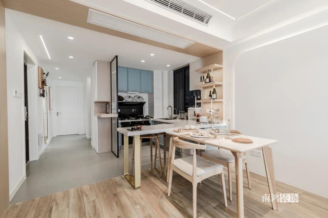 比如,開放式餐廚空間,讓餐廚兩塊區(qū)域的動(dòng)線共享,實(shí)現(xiàn)“1+1>2”的效果,小戶型也能擁有一個(gè)比較寬松舒適的做飯、就餐空間。