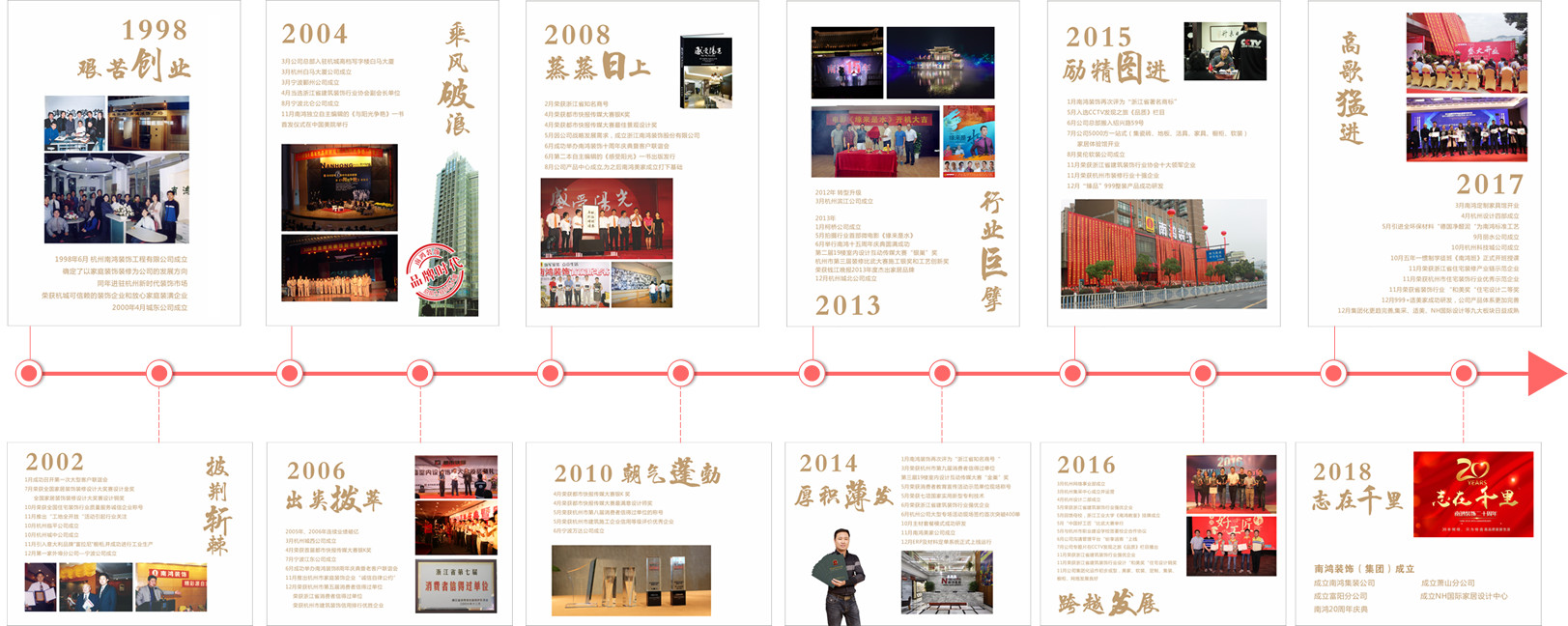 浙江南鴻裝飾股份有限公司成立于1998年,前身為杭州南鴻裝飾工程有限公司,為浙江省著名商標(biāo)、知名商號企業(yè)。南鴻已發(fā)展成為一個擁有31個直屬裝飾分公司和集產(chǎn)品、櫥柜、軟裝、定制、空暖、集采六大板塊的大型裝飾企業(yè),裝修業(yè)務(wù)遍及浙江省內(nèi)外??倶I(yè)務(wù)體量到已經(jīng)達(dá)到8個億,歷年來,公司獲得了全國、浙江省、杭州市等授予的近百項(xiàng)榮譽(yù)。南鴻人始終秉承“做裝修,交朋友”的核心思想,正直、謙遜、寬容、樂觀、堅(jiān)持的經(jīng)營服務(wù)理念,為廣大客戶打造高品質(zhì)家居生活而努力,在十多年的家裝浪潮中實(shí)現(xiàn)了管理和產(chǎn)品雙升級,并成為浙江省管理型的家裝企業(yè)中的翹楚。樹有根,水有源,所以感恩時代,奉獻(xiàn)社會,將是南鴻的一貫品格和永遠(yuǎn)的追求。